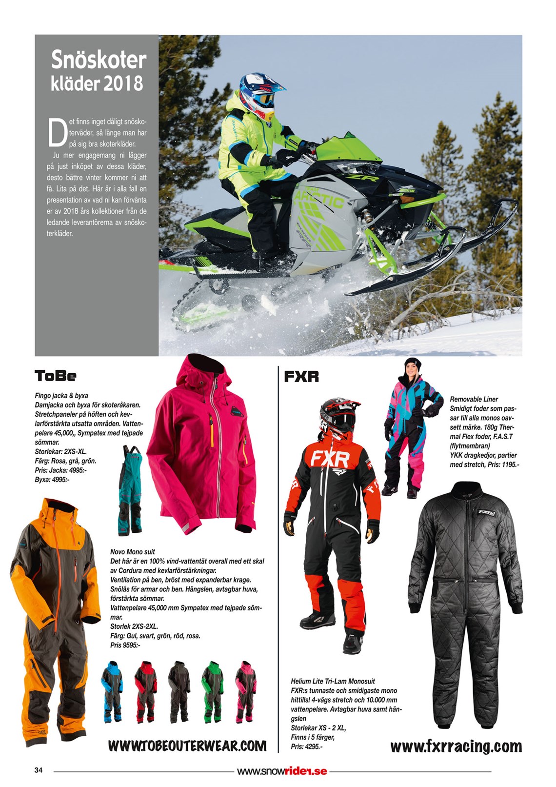 18 Dec 2017 Lynx Snöskoterkläder TOBE FXR Klim Jethwear Arctiva Sinisalo Scott SnowRider Magazine Artikel Ski-Doo 2018 Rukka Halvarssons