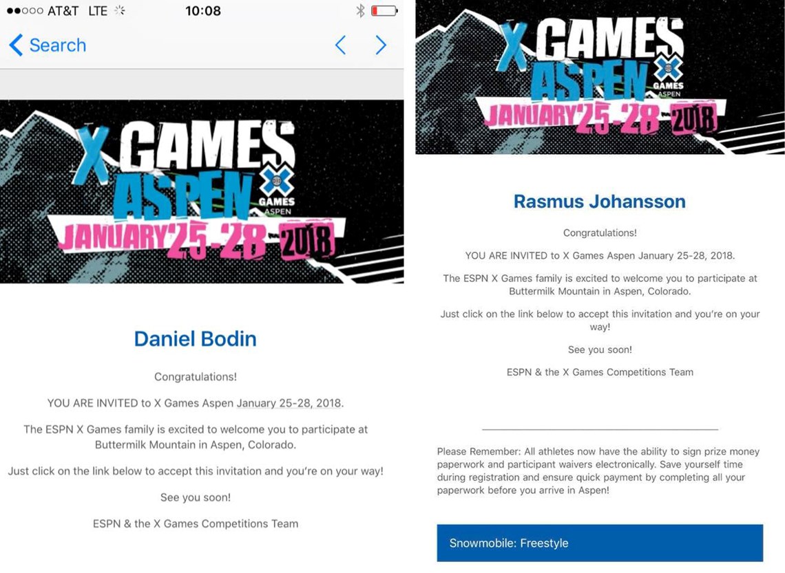Nu är det klart att både Daniel Bodin och Rasmus Johansson får köra freestyle på X Games som körs mellan 25-28 januari i Buttermilk Mountain i Aspen Snowmass, Colorado.