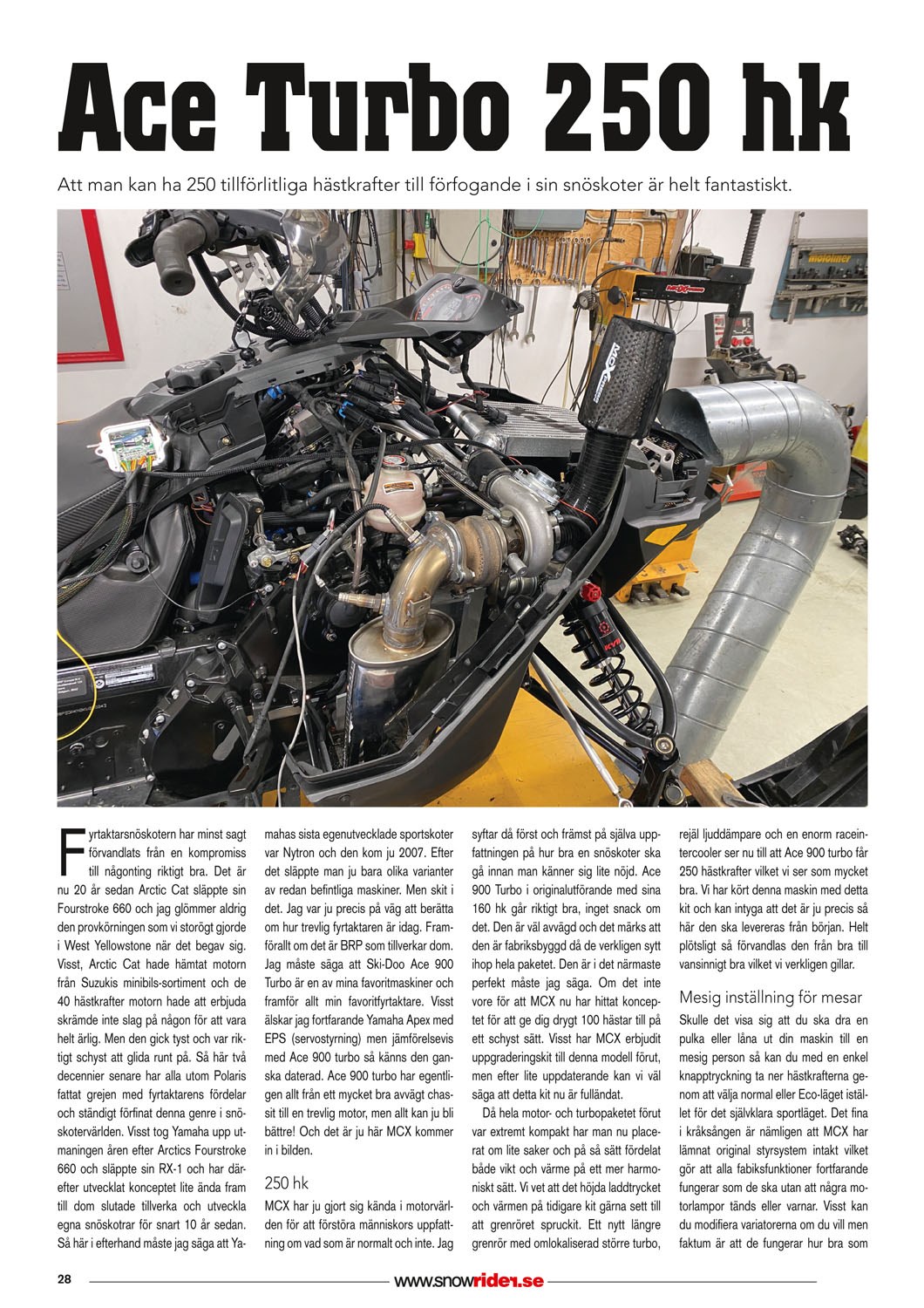 27 Feb 2022 Ace Turbo 250 hk SnowRider Magazine Artikel Ski-Doo MC Xpress Snöskoter 250hk
