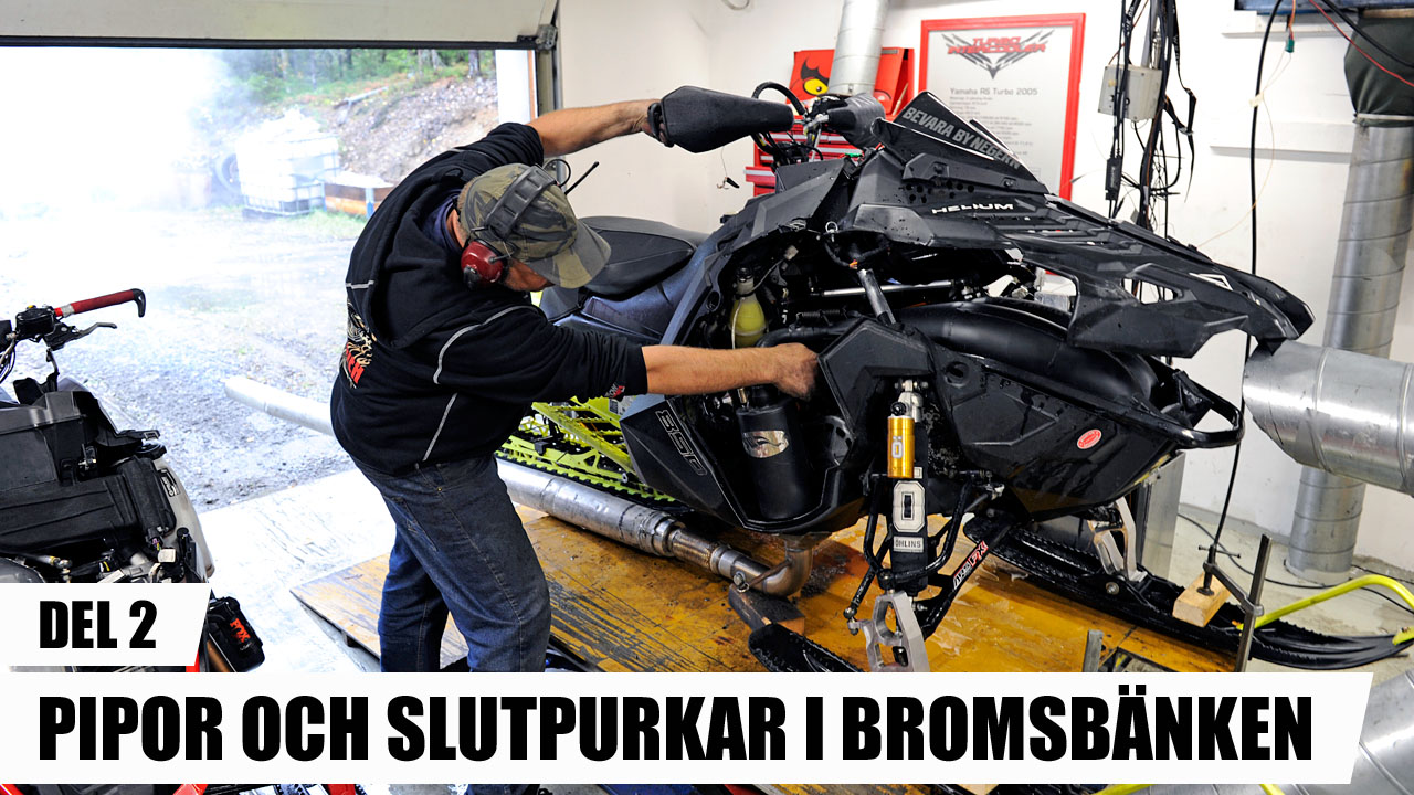 Innehåll: Sanningens minut, vi har varit och testat slutburkar och pipor i bromsbänken och fått svar om dom ger de hästkrafter som utlovas. Vi bromsar en Polaris 850 RMK med SLP Outlaw Twin Pipes och SLP slutburk.